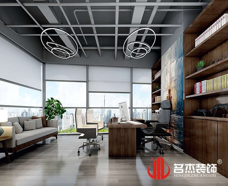 本案例是以建設工程為主的企業,整體空間設計的主題是綠色環保,因此在空間中大量加入綠植呼應主題。同時在整個空間中加入了不少的灰色調的元素,讓空間看起來更加的沉穩大氣。再輔以小裝飾來作為空間的點綴,增添不少的時尚感