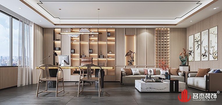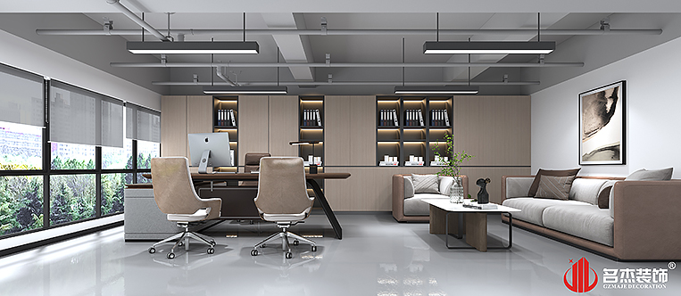 這是一家以研發、生產、銷售納米材料、環保涂料的新材料企業,設計團隊根據客戶需求,以一種時尚簡約的風格來打造出一個符合行業標準且能夠支撐起該企業未來發展的高新科技辦公裝修設計空間。在整個空間中加入常規的設計元素,搭配非常規的木色作為點綴色,讓空間充滿溫馨的氣息,同時還能夠增加空間的設計層次感。