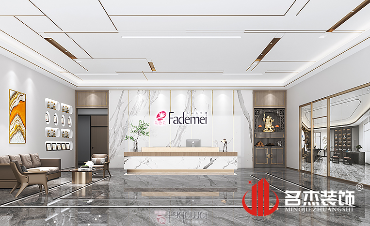 本次來到的是一家專注于高品質護膚、洗滌日化及家居清潔產品的 研發、生產、銷售,是一家以消費者為中心,以現代化科技為引擎,具備自主研發、科技創新能力的大型現代化集團企業。該企業是主營化妝品為主的,對此設計團隊采用時尚流行加上輕奢的元素到整體辦公室裝修設計當中。將展廳作為這次展示企業實力和設計團隊實力的重點區域,在展廳中加入各種新元素,弧形元素更是信手拈來的,讓空間的設計感更加有層次感。