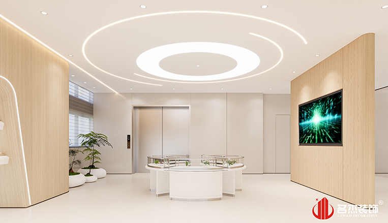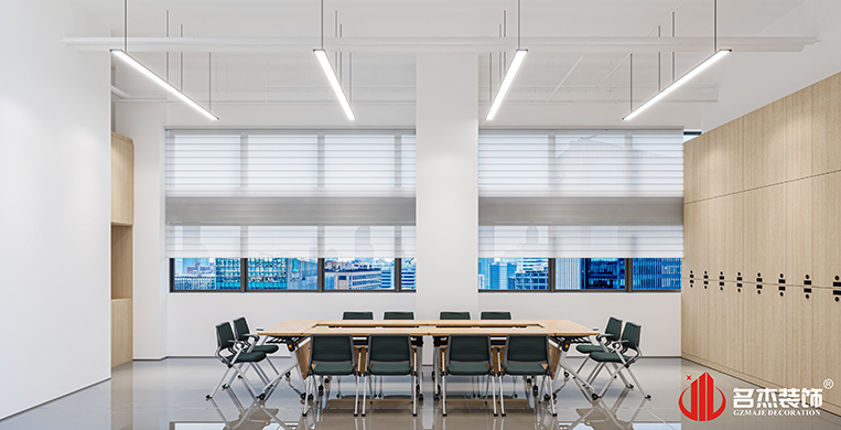 設計團隊在整體辦公室裝修設計空間中多次使用弧形元素,讓空間充滿著更多的設計層次感。同時根據客戶的行業定位,在空間中引入一整顆綠植,讓空間充斥著綠植的元素,也帶來更多大自然的氣息。#廣州辦公室裝修#