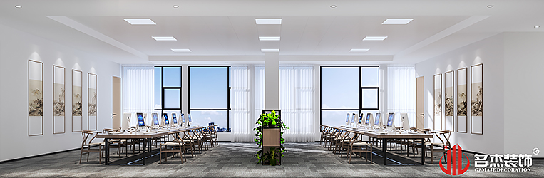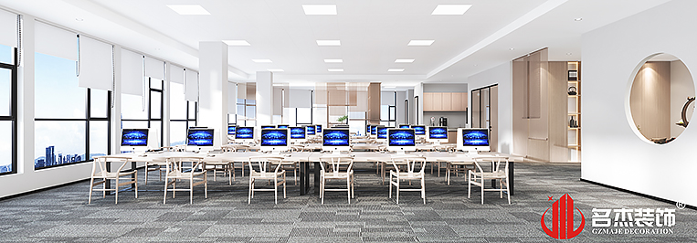 設計團隊將原有的辦公裝修設計空間體量關系進行了有效的梳理,使用干凈簡潔的設計語言碰撞出鮮明的視覺張力,打破原有傳統前臺的刻板和無趣的印象。又以純凈的白色、細膩的原木色,柔和體塊之間的對比,重新塑造了空間的秩序和美觀。軟裝飾搭配的加入也是很好的體現出該設計理念想要突破傳統的想法。