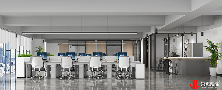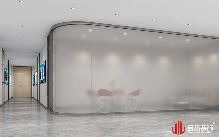 這次辦公裝修設(shè)計空間的層高是可以搭建兩層的,因此在前臺區(qū)域使用中空的設(shè)計手法,搭配時尚簡約的元素,讓前臺空間變得更加有氛圍感。整潔、簡約、大氣,都能夠在這個空間中很好的融合到一起。使用弧形前臺背景墻,寓意著魚如得水。而會議室中使用的是熱彎的霧化玻璃,能夠很好地保證隱私,同時也能夠在空閑的時候,讓整體空間看起來更加通透。