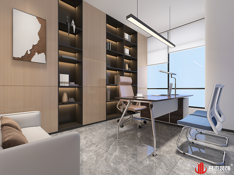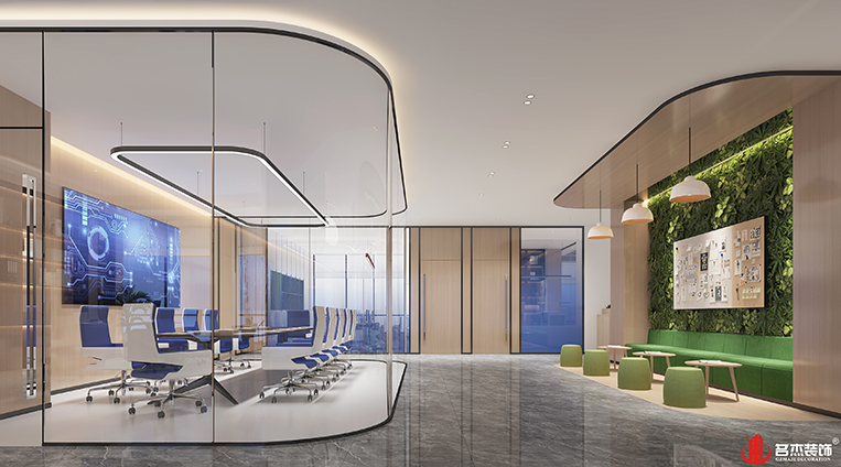 設計團隊這次接到是項目是一家專注于智能汽車照明,是一家集產品研發、制造、銷售、安裝、售后于一體的全產業鏈的企業。設計團隊對于這個行業也是有一定的了解的,再加上客戶的需求和要求,于是設計團隊決定采用時尚簡約風格為主打風格,加以些許科技風元素作為空間的點綴,打造出一個符合現代辦公需求且能夠突出客戶對于未來展望的辦公裝修設計空間。