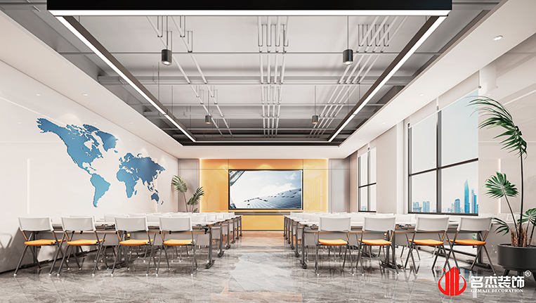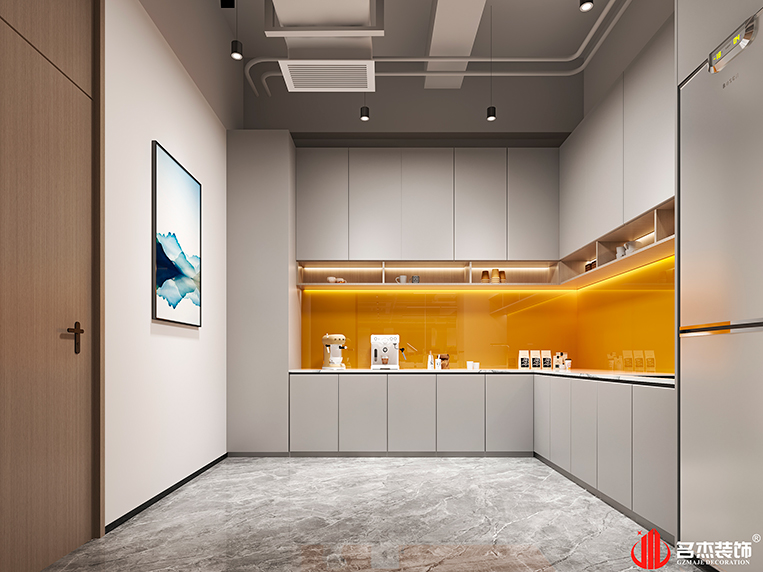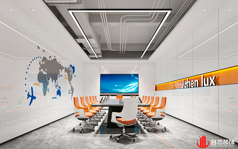 在時尚簡約的風格主導下,設計團隊通過在空間中加入企業的LOGO色,讓空間有著濃郁的企業氛圍,這種設計手法是可以讓企業有著更多的文化輸出,讓到訪的客戶和在職的員工感受到來自企業的文化特色。#廣州辦公室裝修設計#