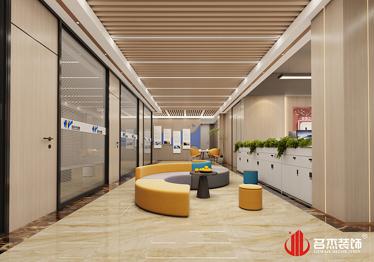 這次主要的設計風格是以時尚簡約為主,加以原木色作為空間的輔導色,讓其更具有活力,同時還能夠讓時尚簡約的風格有著不一樣的展現。一樓挑空的設計,讓其看起來更加大氣,配合大理石紋路的背景墻,加上燈光的合理運用,突出了整個空間的設計層次感。#廣州辦公室裝修設計#