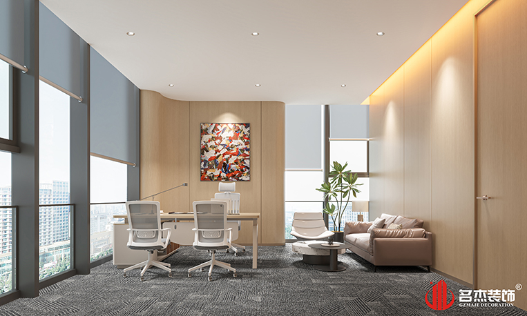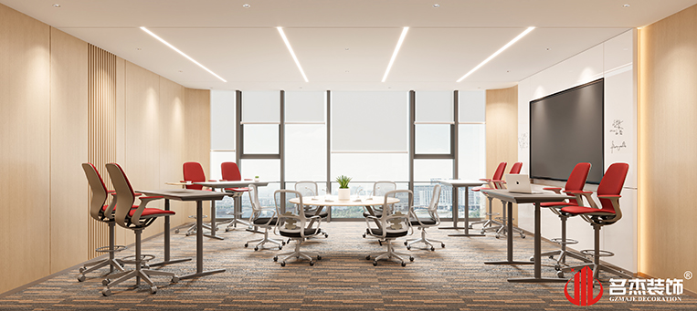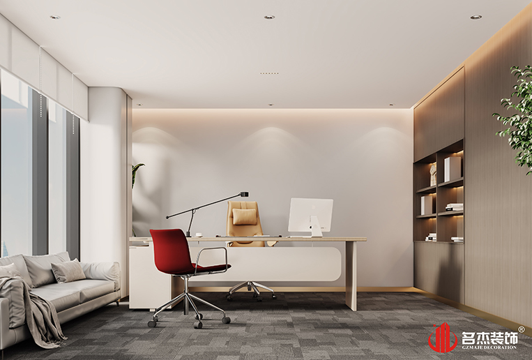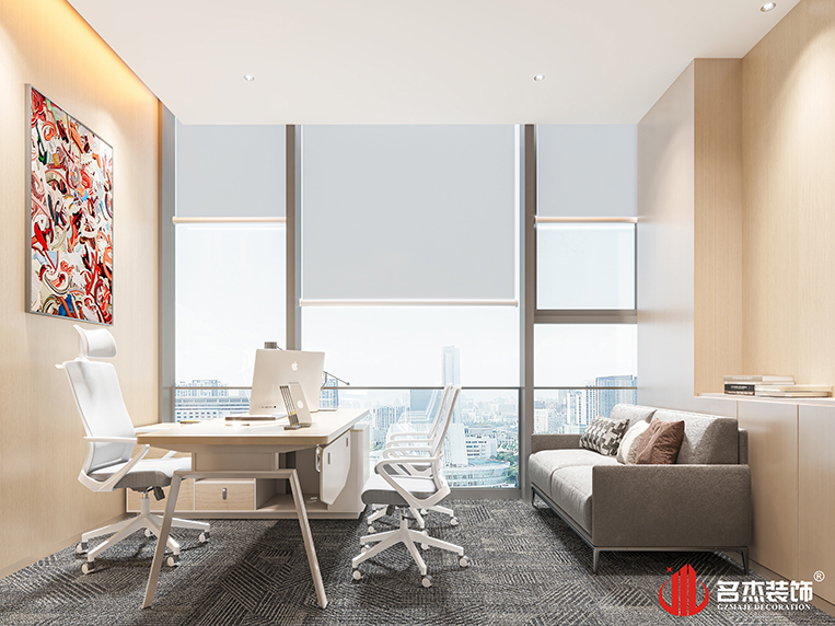 時尚簡約風格是這次設計的主打風格,設計團隊在這個時尚簡約的設計基礎上,大量加入跳色的設計,讓空間具有設計層次感的同時,還能讓來訪的客戶以及員工感受到企業特色設計風格。以搭積木的方式來講辦公區和經理室區域進行分隔,這種非常具有創意的設計也是這次設計的亮點所在。#廣州辦公室裝修設計公司#