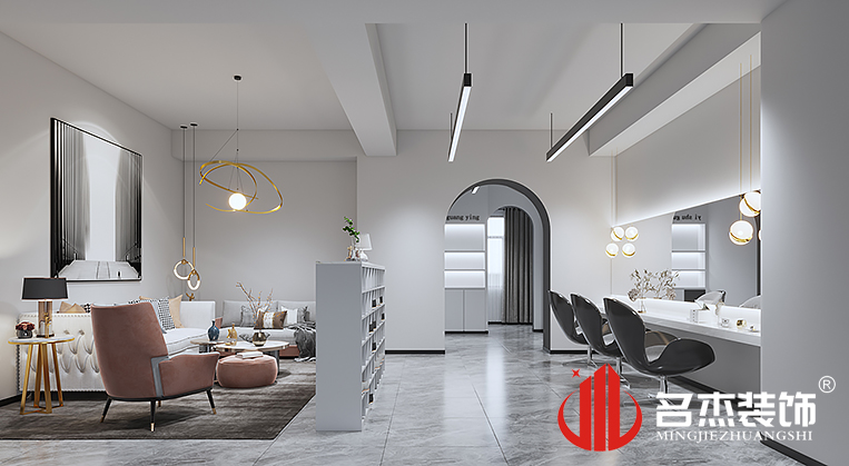 這次來到的是一家攝影室,整體的框架是采用傳統的黑白灰三色的風格來進行裝修設計的,同時加入不同色彩來作為點綴色,讓空間的簡約風格增加了時尚的氣息。再加上不同燈具的裝飾,時尚簡約的氣息逐漸顯露出來,也加強了空間更多的可能性。