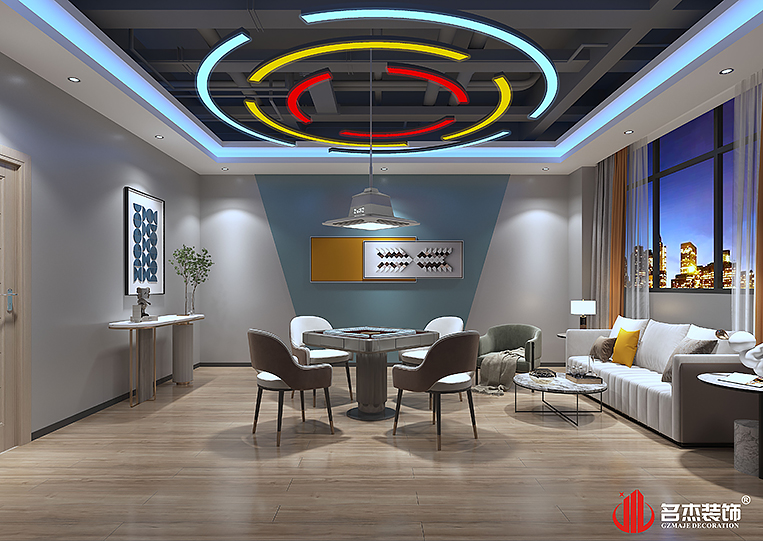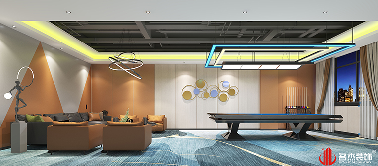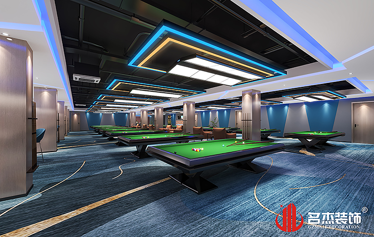 這次是一家臺球俱樂部,主要是以臺球娛樂為主,設計團隊根據客戶的需求,同時加入了對臺球室的一些不同的想法,打造出一個時尚潮流的臺球室。以開放創新的設計作為設計的基調,而且在燈光設計上面,加入多種不同的色調,來增加整體的設計感