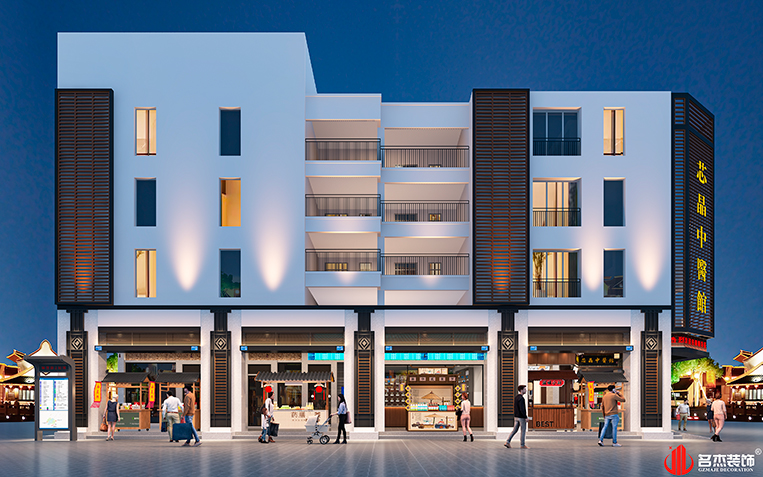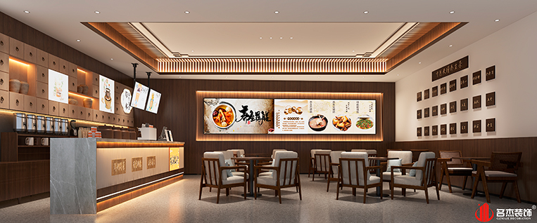設計團隊采用新中式的風格來作為這次店鋪裝修設計空間的主打風格,對于傳統元素的應用,設計團隊也是很好的將其融入到整個設計當中,在天花造型上恰當加入中國結的元素,讓其能夠更加的突出傳統氛圍。同時在外立面也加入了傳統屋檐的設計手法,讓傳統氛圍變得更加濃郁。#店鋪裝修設計#